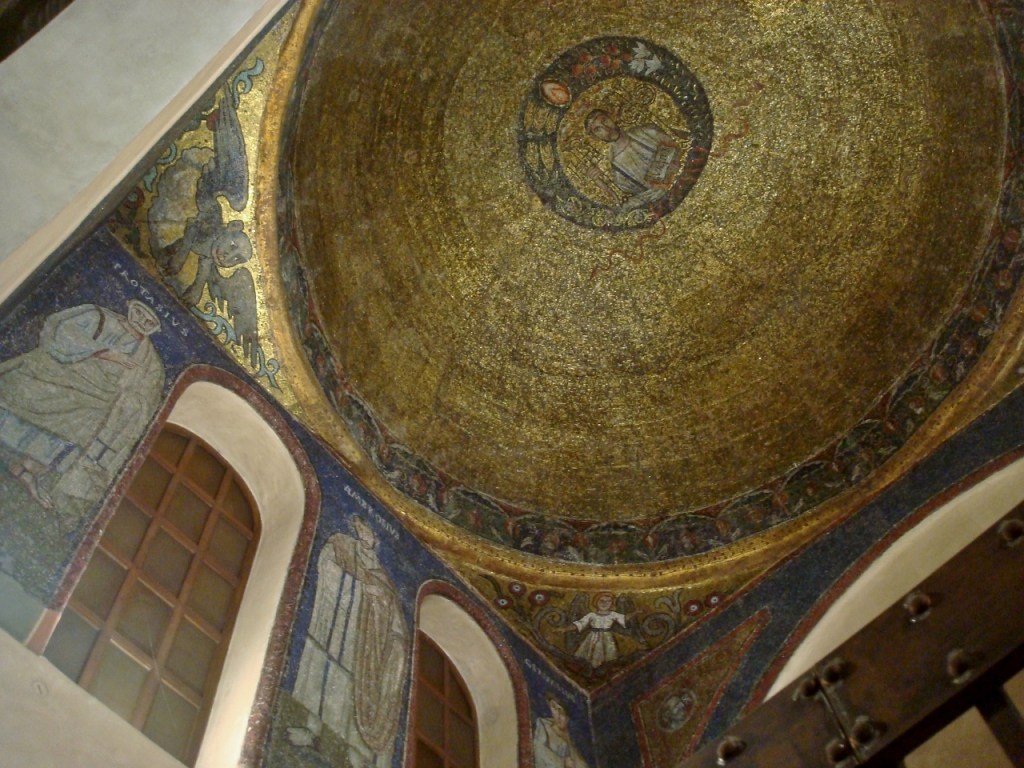Vera gemma tra le gemme è poi l’altrettanto prezioso Sacello di San Vittore in Ciel d’Oro, che alla bellezza degli splendidi mosaici della cupola e delle pareti unisce l’importanza delle origini, le quali – ed ecco la peculiarità del monumento – sono addirittura anteriori a quelle della basilica stessa. Esso infatti fu eretto nella prima metà del IV secolo per volontà del vescovo Materno come semplice cappelletta all’interno del cimitero paleocristiano “ad Martyres” per accogliere le spoglie di San Vittore il Moro, militare romano di stanza nella Milano imperiale martirizzato nel 303 per non aver rinnegato la fede cristiana. Dell’antica costruzione, consistente in un’aula absidata di forma trapezoidale, rimane la suggestiva cupola emisferica, rivestita da un mosaico d’epoca incerta in tessere d’oro con al centro l’effigie di San Vittore.