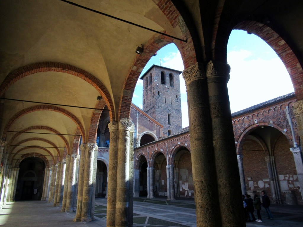 Ma intanto eccoci arrivati davanti alla basilica di Sant’Ambrogio, l’antica Basilica Martyrum, di cui tralascio la descrizione dettagliata poiché richiederebbe pagine e pagine, reperibile comunque con facilità su libri e siti web. Qualche precisa indicazione però è d’obbligo.
