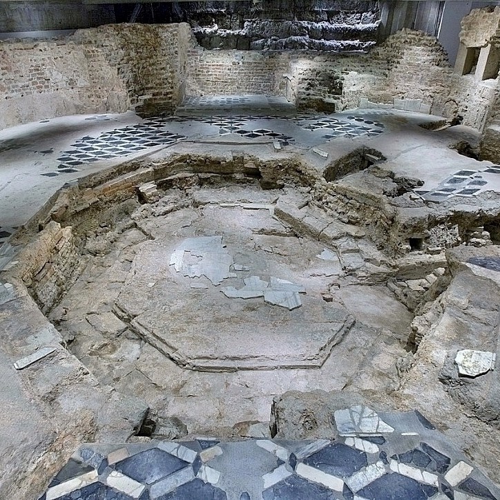 I resti di quest’ultima sono visibili scendendo dall’interno del Duomo, oltre che nel mezzanino della metropolitana M1, mentre sul pavimento del sagrato sono disegnati i contorni delle absidi e del battistero ottagonale di San Giovanni alle Fonti.