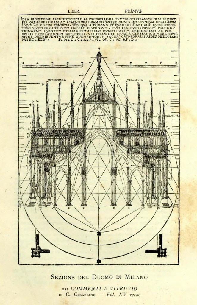 Ed è proprio Gian Galeazzo Visconti a istituire nel 1387 la Veneranda Fabbrica, che ancora oggi dall’omonimo palazzo sovrintende alla gestione della cattedrale. Seguirono oltre cinque secoli di incessante lavoro sotto la direzione dei più illustri architetti e ingegneri – tra cui Simone da Orsenigo, Solari, Amadeo, Dolcebuono, Bramante, Leonardo, Richini, Tibaldi, Bernini, Vanvitelli, Pollack – che succedutisi nel tempo attuarono di volta in volta i propri progetti a modifica dei precedenti, sì che la cattedrale si può ben definire non il frutto di un progetto unitario, bensì il composito ma armonioso risultato di un’opera in continua evoluzione, capace di accostare e fondere insieme gli stilemi più diversi e dalle infinite diramazioni, pur partendo da un’evidente impronta gotica che ha sostanzialmente mantenuto. Il marmo occorrente, ricavato in blocchi giganteschi dalle cave di Candoglia sul Lago Maggiore, viaggiava su barconi lungo il Ticino, il Naviglio Grande e la cerchia interna dei navigli fino ad arrivare al laghetto di Santo Stefano nei pressi della Fabbrica del Duomo, dove oggi esiste ancora la via Laghetto. Ciascun carico veniva contrassegnato con le lettere A.U.F. (acronimo di Ad usum Fabricae) per indicarne l’esenzione da ogni tassa. Da qui ha origine il modo di dire “mangiare a ufo”, nel senso di mangiare a sbafo o senza pagare il conto.