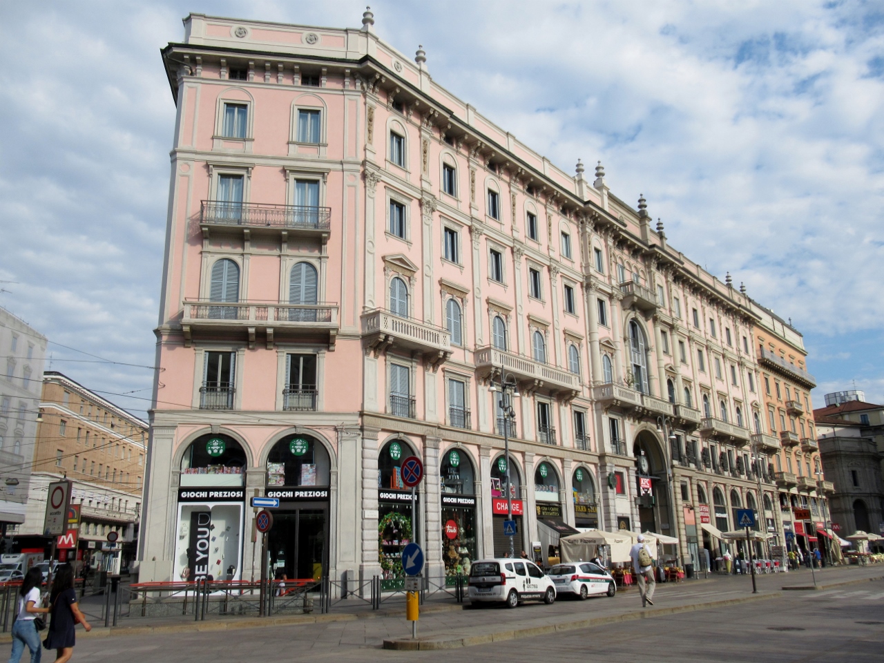 Quella bizzarra facciata ormai sparita compare solo in qualche vecchio film, primo fra tutti “Miracolo a Milano”, capolavoro di Vittorio De Sica, con l’indimenticabile scena finale in cui i “barboni” volano liberi, sulle scope sottratte ai netturbini, “verso un regno dove buongiorno vuol dire veramente buongiorno!”.