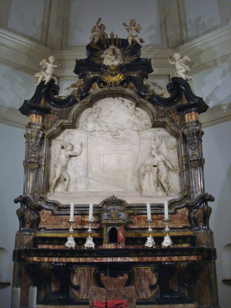 Il palazzo, detto anche “delle Ore”, racchiude a sua volta un piccolo tesoro, invisibile dall’esterno: la minuscola chiesa seicentesca di Santa Maria Annunciata in Camposanto, a pianta ottagonale e contenente il rilievo marmoreo dell’Annunciazione, pregevole opera cinquecentesca di Pellegrino Tibaldi, originariamente destinata al Duomo.