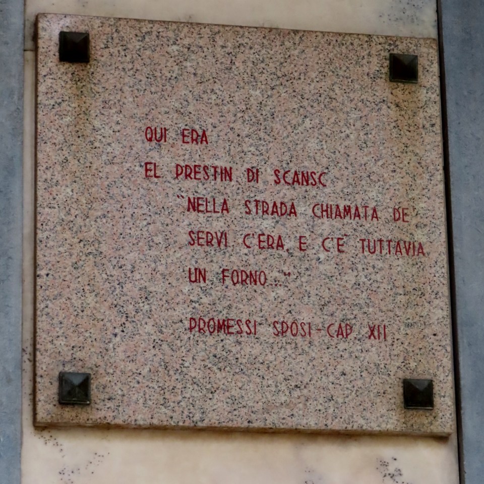 Non mancano le curiosità, come il dipinto in cui lo scrittore e pittore Dino Buzzati interpretò il Duomo e la piazza come un paesaggio dolomitico, sua terra natia, o la targa che al civico n. 31 ricorda il luogo del “prestìn di scansc”, ovvero il “forno delle grucce” di manzoniana memoria, o infine il “caffè del genoeucc” (caffè del ginocchio), bevanda ultra-proletaria diffusa tra Otto e Novecento, ottenuta coi fondi esausti scartati dai bar di lusso e così denominata perché i carretti per la sua preparazione e vendita erano molto bassi – non arrivando al ginocchio costringevano a chinarsi – o forse perché si consumava stando accovacciati sul marciapiede con la tazza sulle ginocchia.