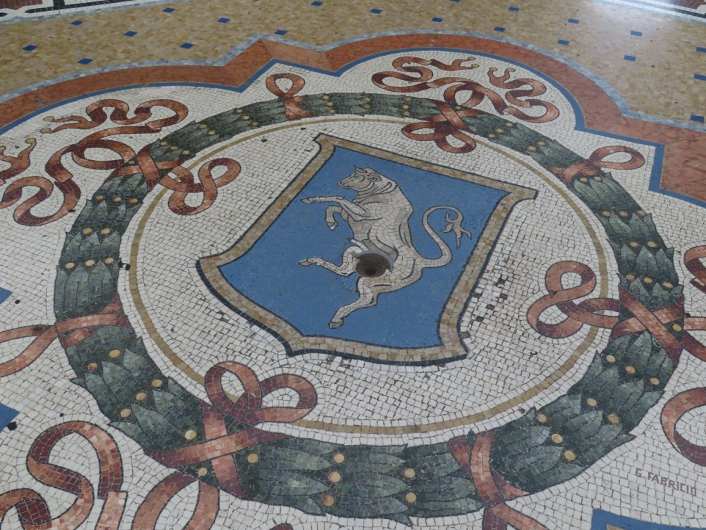 Già colpisce, vista dalla piazza, col suo maestoso arco trionfale, ma entrarci è ben altra cosa e si scopre subito perché. Costruita tra il 1865 e il 1878 – ma aperta già nel 1867 – non fecero in tempo a vederla ultimata né l’artefice Giuseppe Mengoni, morto precipitando dalle impalcature il 30 dicembre 1877, né il Re in persona, al quale l’opera era dedicata, poiché morì anch’egli pochi giorni dopo, il 9 gennaio.