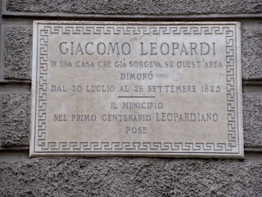 Poco più oltre, ma già in Via Tommaso Grossi, una targa ricorda il breve soggiorno milanese di Giacomo Leopardi nel 1825.
